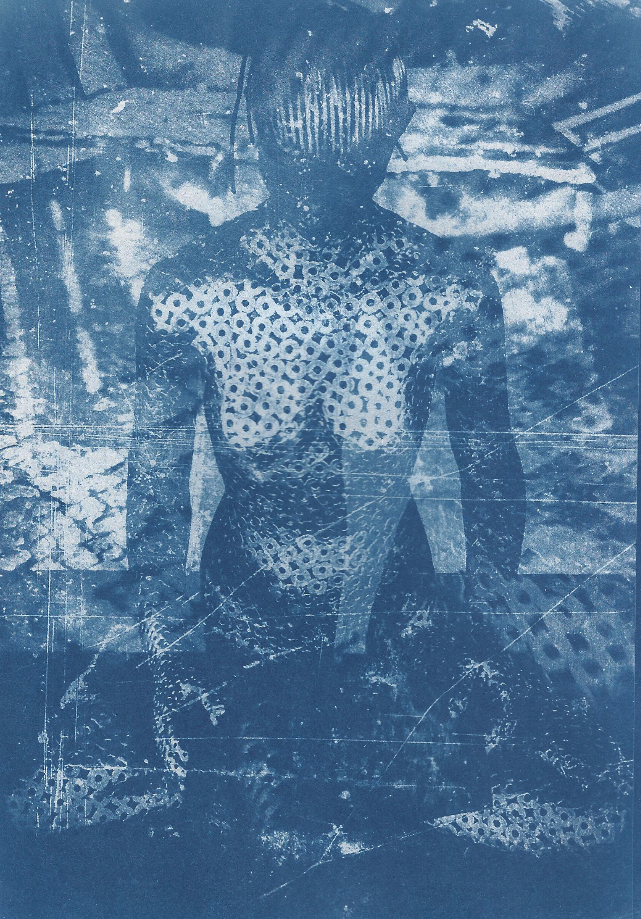 La elección de la cianotipia no es estética ni nostálgica, sino material y conceptual. Se trata de una técnica fotográfica del siglo XIX basada en sales de hierro, en la que la luz deja de ser un instante para convertirse en huella. La imagen no aparece: se fija. El hierro, asociado históricamente a la dureza, la estructura y la resistencia, se revela aquí como una materia sensible, capaz de registrar transformación, tiempo y cambio.